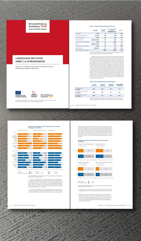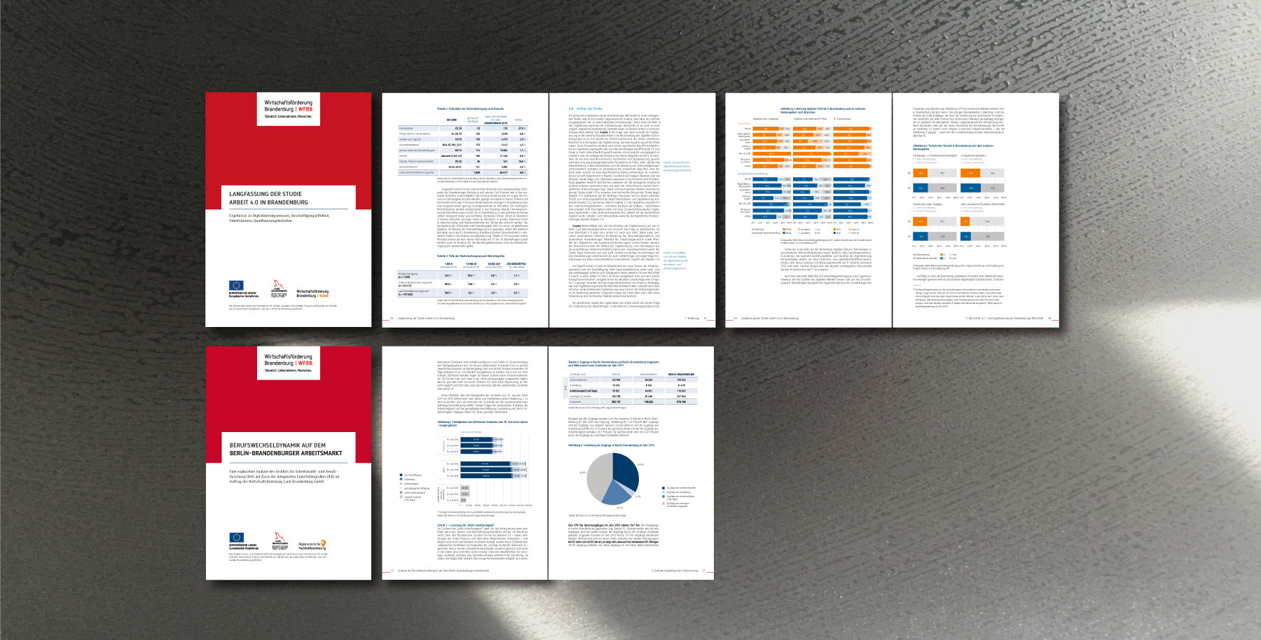 Für die WFBB (Bereich WFBB Arbeit) sind Printprodukte für unterschiedlichste Anwendungen erstellt worden.